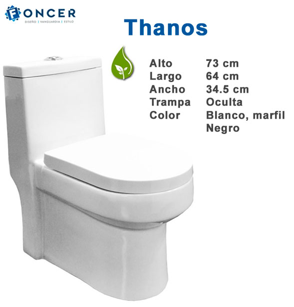 Ecológico, consumo de agua menos a 6 l, Botón de descargar Flush, Asiento de Cierre lento, sistema de descargar Rimless, Fabricado en una sola pieza.